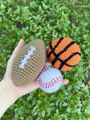 These balls are perfect for little hands to grasp and throw on a field or inside! Perfect for energetic and quiet play. And if they get dirty, just throw them in the washer and dryer! (The suggested yarn is machine wash and dryable!) They come out soft and fluffy. This baseball, basketball, and football set also makes a wonderful gift.