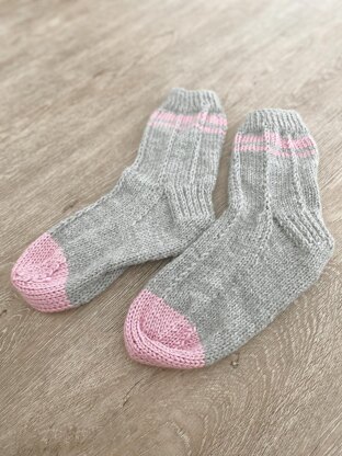 Great for beginners and more experienced knitters. Sock with sport stripes of different widths - knits up super quick with Size US 8 needles.