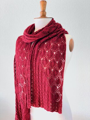 Sprezzatura uses a dynamic combination of two relatively simple lace patterns to create a striking effect. The way dominance shifts between the two stitches does demand that you pay attention while knitting, but the pay-off is effortless elegance. Just toss it around your neck knowing however it falls, there will be plenty of visual interest and no fuss.