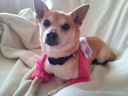 The pattern is written for Medium/Smallish Large (Bella is about 10 lbs) but includes the formula to figure out how to alter it to fit your dog. If you can't figure out how to work out the formula I wrote out in the pattern you are welcome to email me at the address included at the bottom of every page with the measurements requested in the pattern and I will do the math for you and let you know how may sts and rows you will need to do.