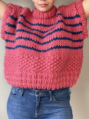This Spring Jumper is soft, squishy, sexy, wear all the time sweater for all those pleasant spring days. This half sleeve sweater looks super cute with with contrast strips and textures knit in chunky yarn. Super easy and knits up quickly. Enjoy some warm, cozy coffee runs with this live-in jumper!! Happy New Season!!
