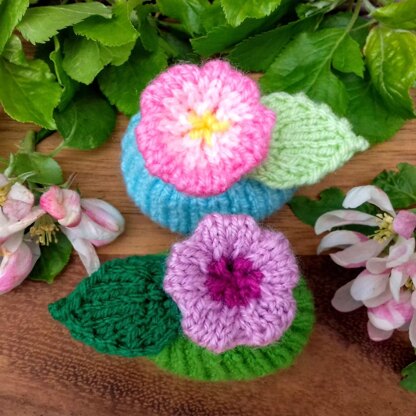 They are quickly and easily knitted using straight needles and odds-and-ends of coloured DK yarn.