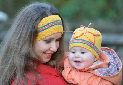 This knitting pattern is for my Spring Butterfly Baby Hat and Headband. The set is very easy to knit. It is made in stockinette. The baby hat has a beautiful butterfly at the front. The butterfly has cabled body decorated with glass beads and wings are decorated with the blanket stitch on the edge. Both items are knitted in the round so they have no any seams.