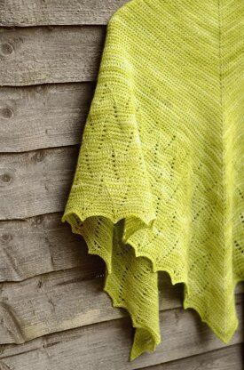 Spring Etude is a triangular shawl crocheted from the top down, edged with an elegant lace border and finished with pretty scalloped points.