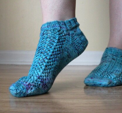 Featuring simplistic lace columns paired with trusty stockinette, these lacy socks give a breath of fresh air to your wardrobe.