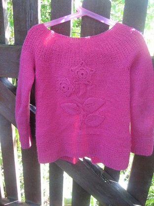 This sweater is inspired by my older daughter, she picked out the yarn and the colour and asked for a long sleeve, button up sweater, with flowers. And ofcourse I do my best to give her the sweater of her dreams.