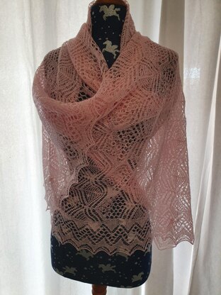 The instructions provided in this pattern will enable you to make this beautiful light, lacey, and delicate wrap that features a combination of flowers and diamonds in the Shetland Lace tradition. It can be knitted in a variety of different wool weights from cobweb up to 3 ply or light fingering, however, the heavier the yarn is, the larger the finished article will be. The pattern is a charted pattern only, with no written row by row instructions, so it is not for the faint-hearted. Only buy this pattern if you can knit from a chart.