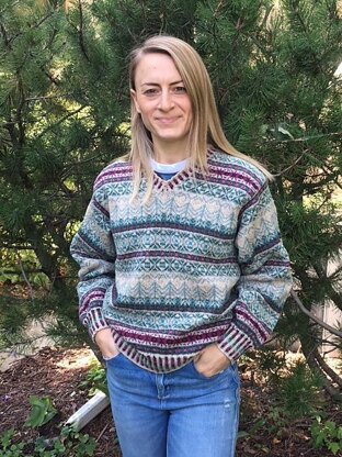 The sleeves are written for bottom-up knitting and Norwegian-style insertion. Kitchener stitch grafting is optional at shoulder joins and underarms. All techniques are described, with some online tutorials suggested for knitters interested in learning new techniques.