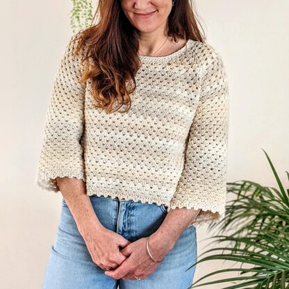 Worked from the top down in granny stitch on a 4mm hook, it hooks up in no time and there are endless style combintations. It can easily be extended into a longer top or dress, the sleeves can be left as cap sleeves and the picot trim can be omitted for a minimal finish. There are also suggestions on how to taper the waist for a slimmer fit.