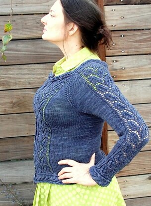 This is a pattern for a Raglan cardigan, worked flat, with front left/right and sleeve lace insert panels. The neck is provisionally cast on and the cardigan is worked from the neck down. Sleeves are worked in the round, and the collar, button/buttonhole bands, and bottom cable and cuff bands added later. There is, also, an option for back and/or side shaping. You are encouraged to try on your cardigan, often, and make it to fit you! (or your intended recipient)