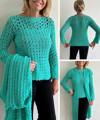 Isn't this a great idea? A sweater and a matching long vest! The vest can be made shorter if that's what you prefer, it's just a matter of omitting rows in the main body ;) A great combination that can be worn together as well as separate. I used a 3 ply cotton milk yarn, but any yarn or cotton suitable for hook 4mm/ G is fine as well.