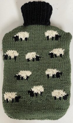 The pattern comes with a grid to follow as well as written instructions including hints and tips. I have suggested that the feet and head are knitted using the intarsia method and the body of the sheep in fair isle. The neck of the hotwater bottle cover is knitted in the round on DPN's. The cover will fit a standard hotwater bottle. You will need 1 full skein of the green and part skeins of the black and cream.