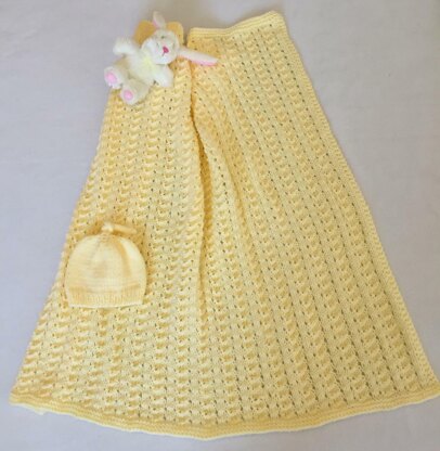 Fresh, light, and lovely lemony color yarn, makes this great baby gift set! It all can be made with a one pound ball of yarn, in light yellow, or color of your choice. A great baby shower gift! This is not a ripple stitch, but looks similar to a ripple. It is an easy pattern stitch that won't take you long to remember as you work your way up the blanket.