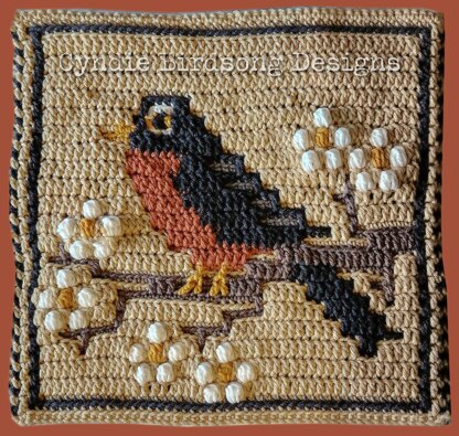 Originally I designed this square as a robin, but in the testing process, it was fun to see other bird colors the testers came up with, such as other robin variations, a blue bird, and even an oriel! I realized I should just call this one Springtime Songbirds as there are so many beautiful ones out there & what better way to bring in the Spring!
