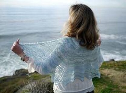 A flirty, half-hexagon shawl in two sizes (petite/tall), worked from hem to neck, featuring openwork motifs that mimic the textured patterns in ice crystals and snowflakes. While the stitchwork and construction appear intricate, the motifs are actually worked entirely with simple maneuvers; the challenge with this piece is that for some, it may require extra focus and attention. The result is well-worth the investment however, and wrong-side rest rows provide the opportunity to catch up, so that it knits up quickly in a heavier laceweight yarn. All in all, a delightful project in which to immerse oneself for a post-holiday knitter’s treat.