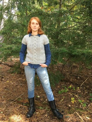 A bold horseshoe cable, flanked by rib, covers the center of this quick to knit bulky pullover. Worked from the top down for minimal finishing, Squanacook is a great layering piece for chilly weather. Short rows shape the neck for a good fit.