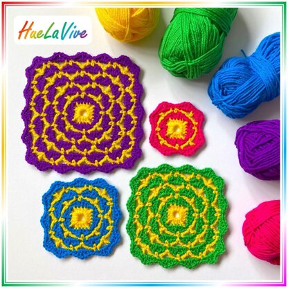 The pattern is easy to follow and repetitive after the first few rows, so you can relax with it and continue crocheting to any size square project you choose.