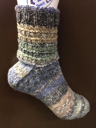 This is a knitting pattern for an ankle length sock. It is knitted in the round with DK yarn. The length of the foot can be altered to fit.