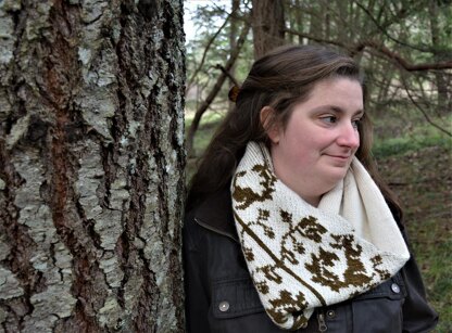 This fairisle infinity scarf is inspired by oak trees and the squirrels that like to play in them! The fairisle detail makes up roughly one third of the infinity scarf loop, and the rest is knit plain in the background colour to show off the fairisle section.