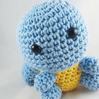 In this pattern you will learn how to crochet Squirtle based on the character from Pokemon. Your finished Squirtle will stand approximately 6 inches tall depending on your gauge.