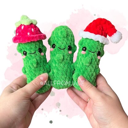 #6 Bulky yarn weight (you can use any yarn for this project) 17g of green, a few grams of red, white and pink if making the hats/cheeks