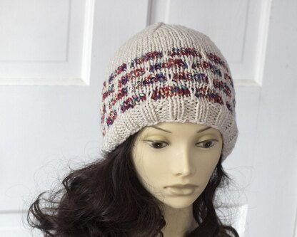 A stained glass beanie pattern. This hat is easy to make using the mosaic knitting technique so there is no carrying of yarn, use only one color on each round.