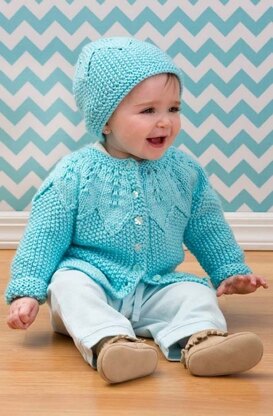 Star Bright Baby Cardigan & Hat in Red Heart Soft Baby Steps - LW3596EN