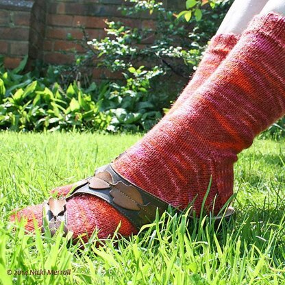 Star socks are ideal for beginners to sock knitting. These socks are knitted seamlessly from the top-down. You start with a ribbed cuff, then relax while working the leg in stocking stitch. Then, you make the heel by knitting a rectangular heel flap and work a few rows to turn the heel. Next you pick up stitches along the sides of the heel flap, then knit the gusset and the rest of the foot in stocking stitch. Finally you work a star toe; there's no Kitchener stitch or grafting involve, so this toe is really simple.