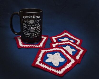 Celebrate July 4th and show off your best Red, White & Blue! Protect your furniture from spills and scratches while showing off your patriotism with these colorful coasters. They work up quick and easy with simple stitches and are perfect for your Independence Day festivities!