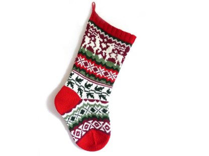 1 ball each of the following colours is required to knit this stocking: Scarlet (12) Forest (46) White (01) Emerald (39) Maroon (48)