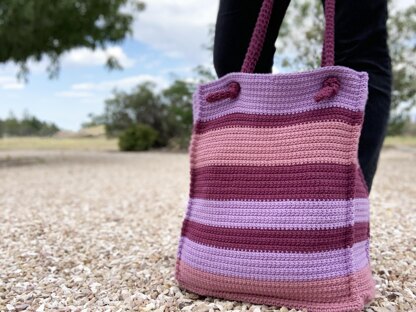 This bag is made easy by working in the round. Then, you will use faux seams at the end to give it structure. The pleated sides means the bag is much larger than it seems and will hold all your gear.