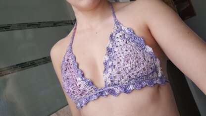 This pattern is based off of a basic Granny square, turned triangle, and builds off of the "granny triangle" in order to make the bralette!