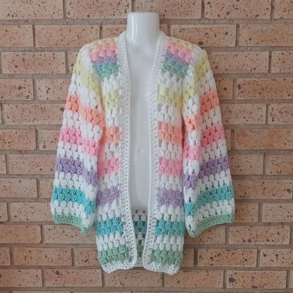 Stay on trend with this chunky crochet cardigan. The Starburst cardigan crochet pattern is perfect for all! Whip up this easy chunky cardigan in no time at all. The Starburst crochet cardigan is named after the much loved 90s fruit chews. This chunky boho-chic cardigan promises a burst of colour and a quick turnaround using Stylecraft special chunky.