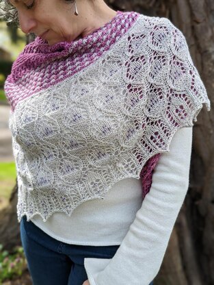 This shawl, inspired by the starflower that emerges in spring, is a lighthearted asymmetrical sweep that includes sections of beaded lace, slipped stitch colorwork, texture, and garter stitch. Choose two high-contrast colors that make your heart sing!
