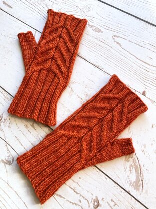 Cosy cabled mitts that are a perfect match to the Starflyer Hat.