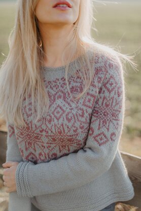 Gauge: 20 sts & 26 rows = 10 cm / 4” in Stockinette stitch and colourwork in the round, blocked.