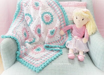 This gorgeous granny square blanket is just so snuggly! Being a sun square and not a flower means it is particularly suitable for either a girl or boy! It can be crocheted in acrylic or cotton aran yarn, it works up quickly and is very soft and cosy for baby.