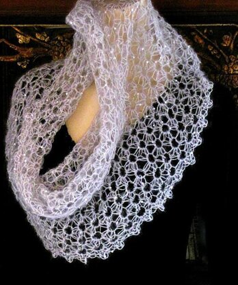 I'm delighted to share my discovery of a special type of 19th century Star stitch in the form of this veil-like "smoke ring." Unlike the usual Star stitch projects, Starwirbel is stretchy and weightless, yet holds its shape. I've enhanced its starry texture with a spiraling construction, twinkly yarn, and a bit of invisible increasing.