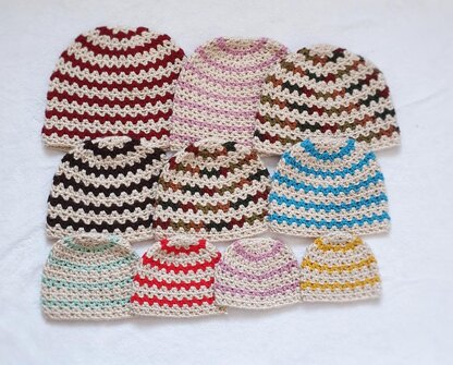 The double crochet v-stitch beanie is the ultimate stashdown project. With its simple stitch repetition round after round, popping colour combination options and multiple sizes, you will always have a someone to make this beanie for.