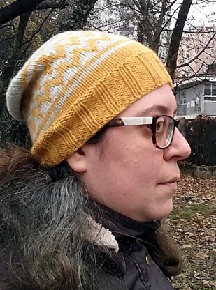 Nato per un corso, questo cappellino può essere l’accessorio perfetto per imparare la tecnica stranded. Scegliete il vostro preferito tra i due motivi, quello più complesso da 25 maglie o quello più semplice da 5. Potete scegliere se lavorare i due colori tenendoli uno nella mano destra e l’altro nella sinistra (come faccio io, e come in questo video: https://youtu.be/W2mUIVOn3uA) oppure usare entrambi i fili con la stessa mano (in questo video entrambi i fili sono lavorati Continental:https://youtu.be/mY3oN4Hcn30). Il giro di maglie rovesce permette di indossare il cappello con il bordo all’esterno, per un cappello più lungo e morbido, o all’interno, trasformandolo in una calottina.