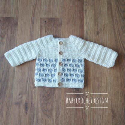 This stepping stone effect baby cardigan is made using a simple hdc (htc UK) stitch for the yoke and the stepping stone effect is made using sc (dc UK) and dc (tc UK)and is quick and easy to work up, it can be made with one or more contrasting colours and is a good way of using up scrap yarn.