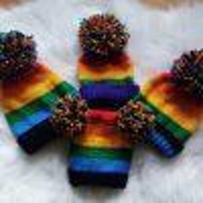 "Rainbow" Chunky Knitting pattern with instructions to fit baby - adult in two styles - traditional and T-Bag.. Straight forward instructions using stocking stitch and you can make it your own with colours. Proceeds from the sale of this pattern will be donated to the Orphans of Belarus.