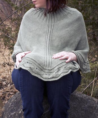 A classic poncho with elegantly simple lace and twisted ribbing evoking the waking up of spring. Comforting on those in between days, it is worked in a reversible pattern, though designed with the reverse stockinette side in mind.