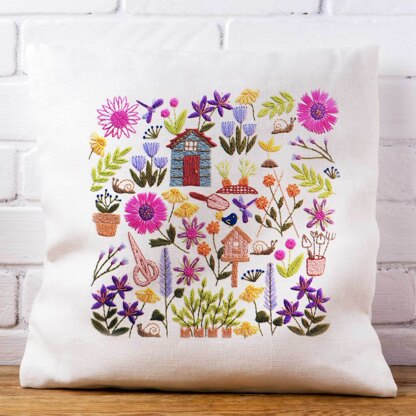 Beautiful, Colourful and Fun Hand Embroidery Designs Discover your next stitch journey.\n\nHere at Stitchdoodles we are all about creativity. Sitchdoodles was created in 2019 after I was finding it difficult to find hand embroidery patterns that were exciting and a bit different from the usual. Wanting to combine our love of hand embroidery stitches, traditional sampler techniques as well as quilt designs(!) I decided to come up with something myself and it has evolved into an array of wonderful and colourful designs that will hopefully inspire and excite people to pick up a needle and get 'happy stitching’.\n\nWhat you will receive:\n• This pattern is available as a PDF download so you can access the pattern as soon as you would like.\n• Each pattern comes with details on the colors, threads, and materials required.\n• Easy to follow instructions are given along with full-color photos.\n• All templates are provided actual size.\n\nFind yourself stitching a gorgeous garden packed full of everything you could possibly want with this fabulous pattern. The snails, the potting shed, the flowers, the veggies - so much to explore and stitch as you complete this design.\n\nThe design is approximately 6.5 inches square. The pattern details the floss and stitches I used in the example photo but feel free to make your own choices – it’s up to you!