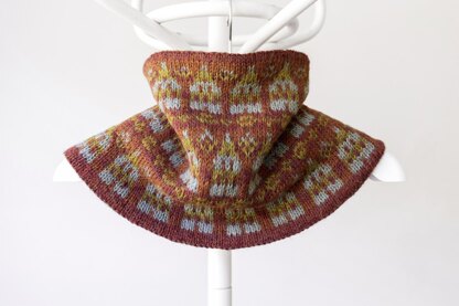 The Stortorget cowl is worked as a long tube in the round, using two different patterns — houses and chains. You will need circular needles 3 and 3.5 mm both about 60 cm length, stitch marker to mark the beginning of a row and a tapestry needle.