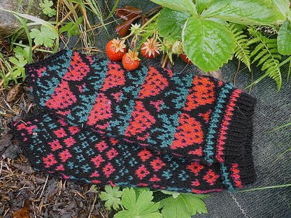 This is a huge plump supermarket strawberry. For a forest strawberries pattern check this out: http://www.ravelry.com/patterns/library/strawberry-mittens-3.
