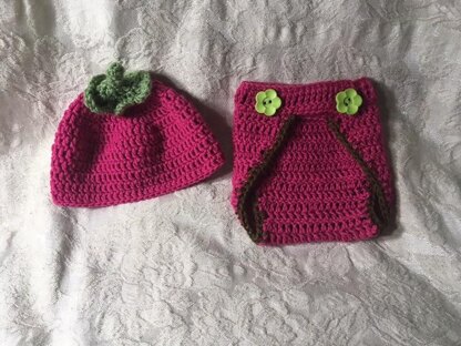 Easy pattern for a cute strawberry themed baby outfit. Hat is worked in the round and diaper cover is worked across. Sized for 0-3 months (but easily adjustable by using thicker/thinner yarn, a different hook size, or adjusting the number of stitches. Pattern PDF includes written instructions in American English and an image of the completed hat and diaper cover for reference.