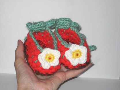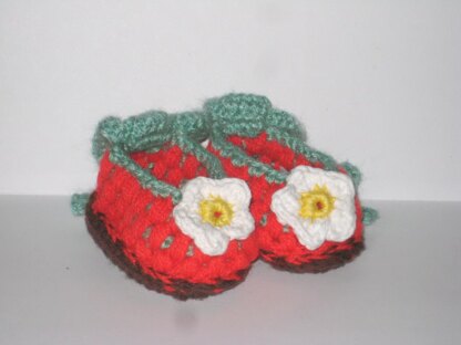 Crocheted baby shoes strawberry with white-yellow flower is a perfect gift for your little baby girls. Made of acrylic or cotton yarn. Pattern is written in English, U.S. terminology. This pattern includes step by step instruction and very detailed photo tutorial. Basic skills of crocheting are needed.