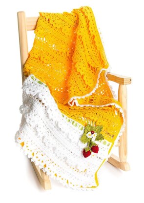 Have you ever longed for those deliciously warm summer days, when nothing seems sweeter than that fresh-picked strawberry that just brought a huge grin to your face? Now you can bring that feeling of sunshine, happy babies, family picnics, pretty flowers, and of course—strawberry-induced joy—to every day with the Strawberry Delight Blanket. Lovingly designed with eye-popping 3D flowers and “garnished” with a beautiful strawberry with leaves pin, this blanket would be perfect for a summer-born baby or just anyone who deserves more sunshine in their life!