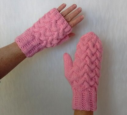 Years ago, my kids fell in love with a dessert made from strawberries blended with whipped cream. The offset cables in this pink remind me of that dessert. They are so soft and squishy you will just want to squeeze them. The thick cable puffs create air pockets that will be sure to keep your hands warm. Instructions are included to make either fingerless mitts or full mittens.